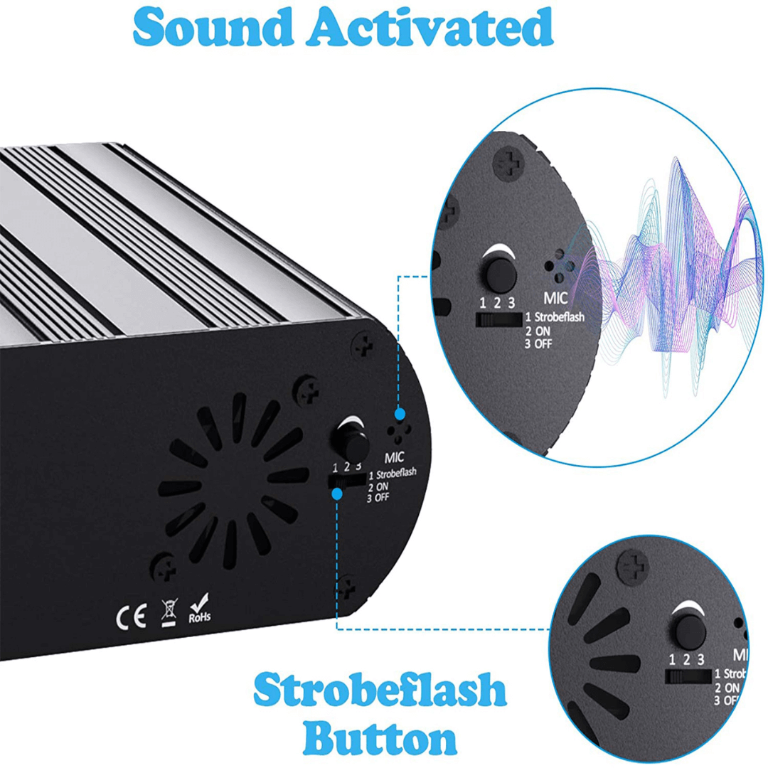 - Tipo de luz: Láser Doble + LED RGB