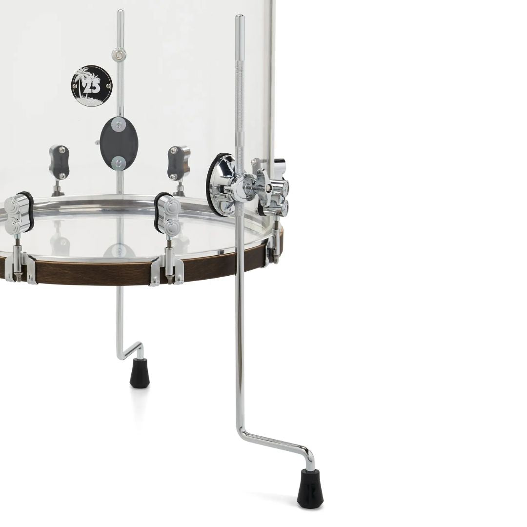 La PDP 25th Anniversary Acrylic combina cascos acrílicos sin costuras con aros teñidos de nogal y herrajes premium para un look imponente y un sonido moderno con ataque brillante y sustain controlado.