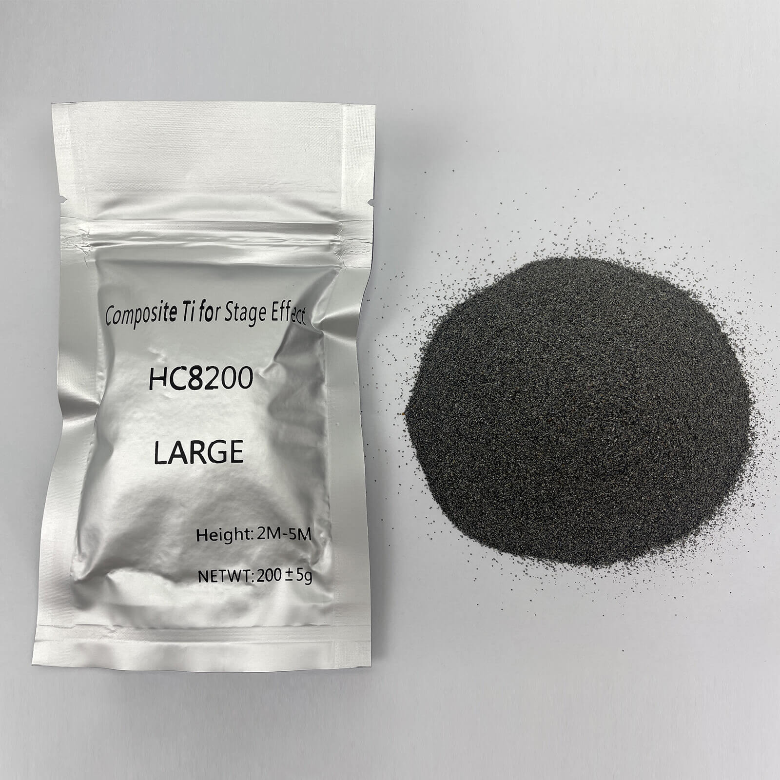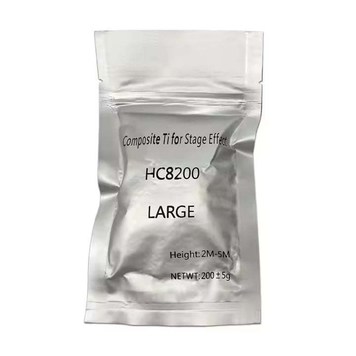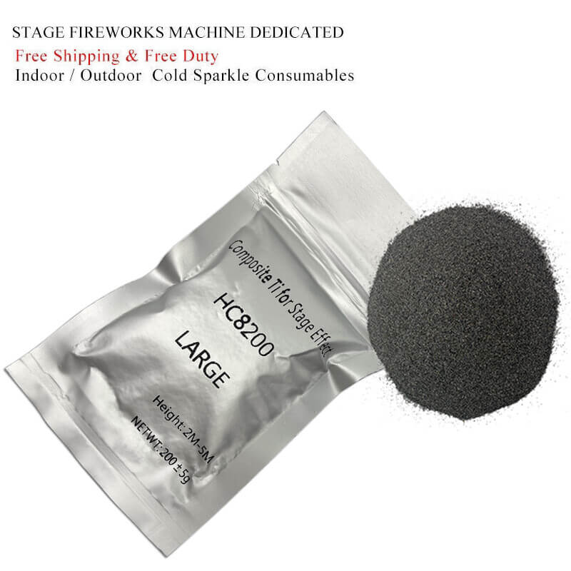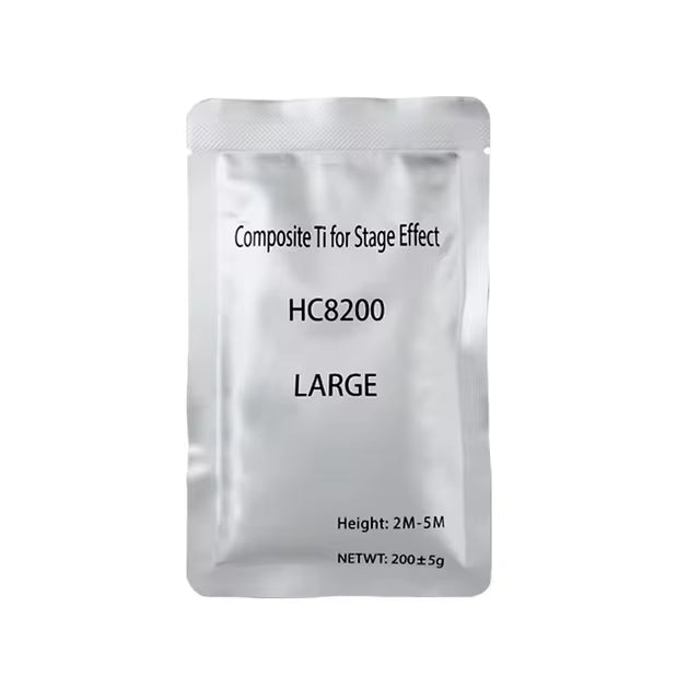 El polvo metálico HC8200 está diseñado para crear espectáculos de chispa fría 100% segura en interiores y exteriores. Su fórmula de titanio compuesto permite un efecto visual impactante de hasta 5 metros de altura, sin humo ni olor, ideal para bodas, conciertos, escenarios, discotecas y eventos premium.