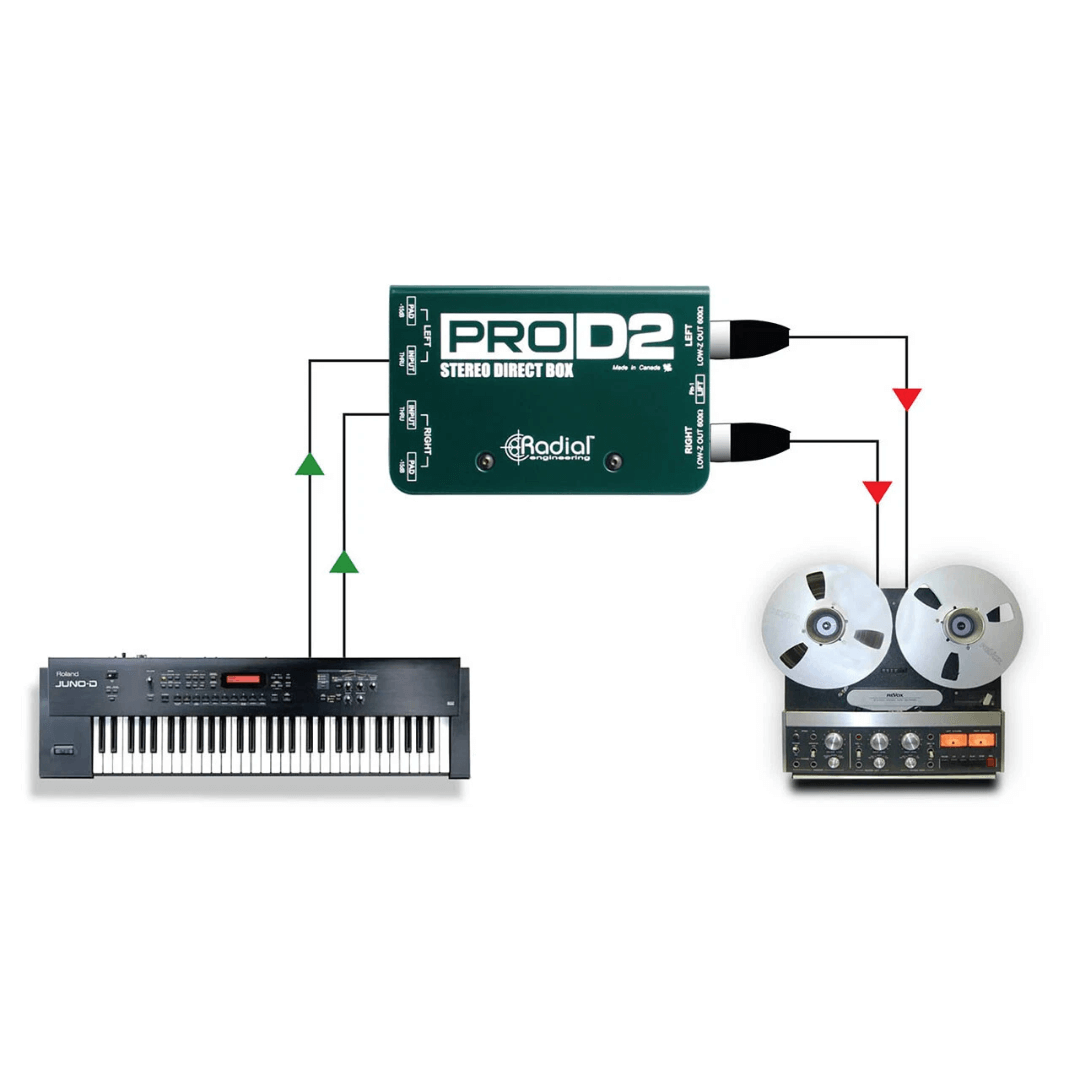 Ideal para teclados, sintetizadores, reproductores, módulos de sonido, laptops o interfaces de audio, la ProD2 mantiene la reputación de Radial como líder en fiabilidad, rendimiento y sonido natural.