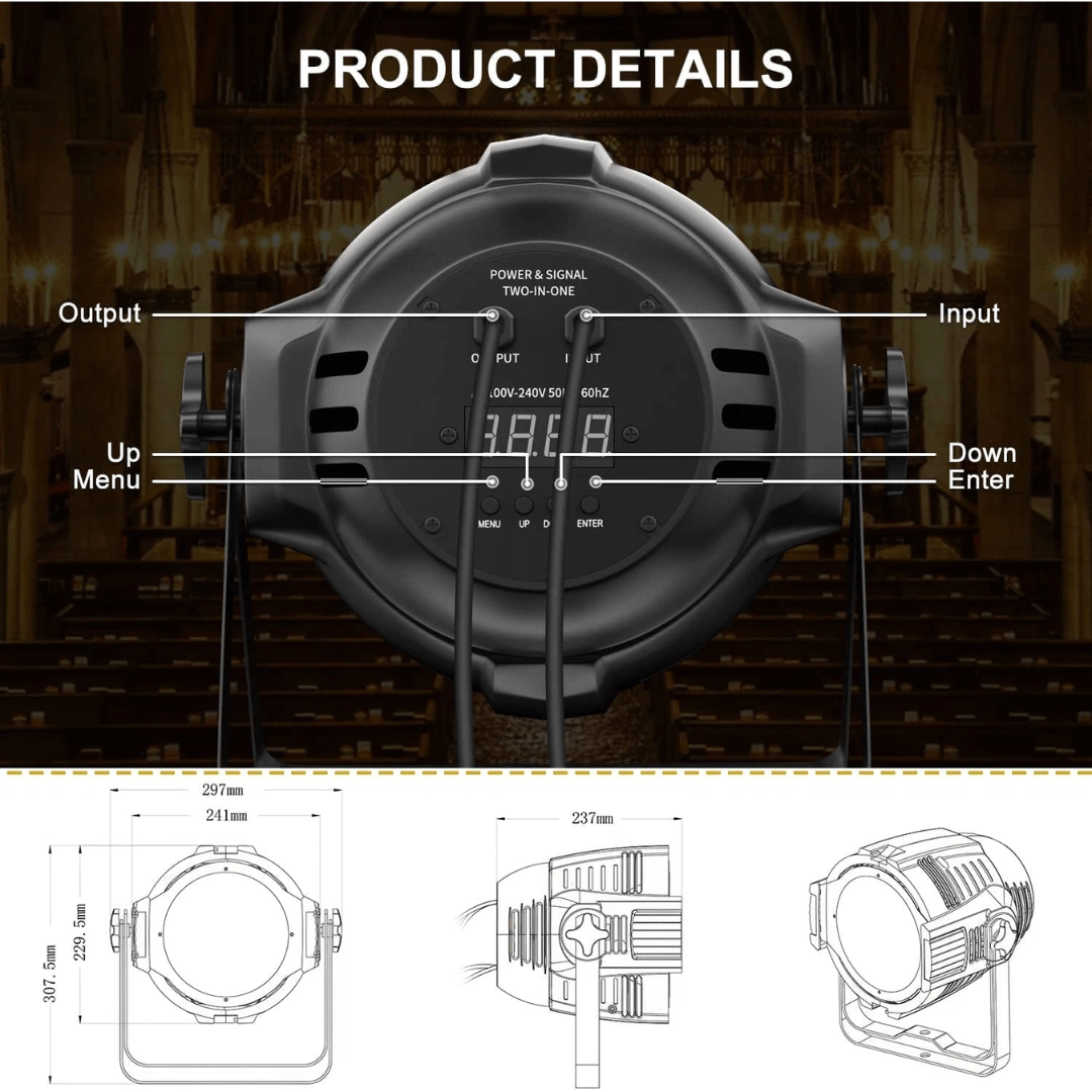 Con 54 LEDs de 3W de tipo RGB (3 en 1), este modelo proporciona mezcla de color precisa y efectos wash intensos, ideales para escenarios, conciertos, teatros, estudios, discotecas y eventos corporativos.
